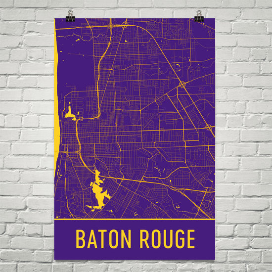 Baton Rouge LA Street Map Poster Wall Print by Modern Map Art
